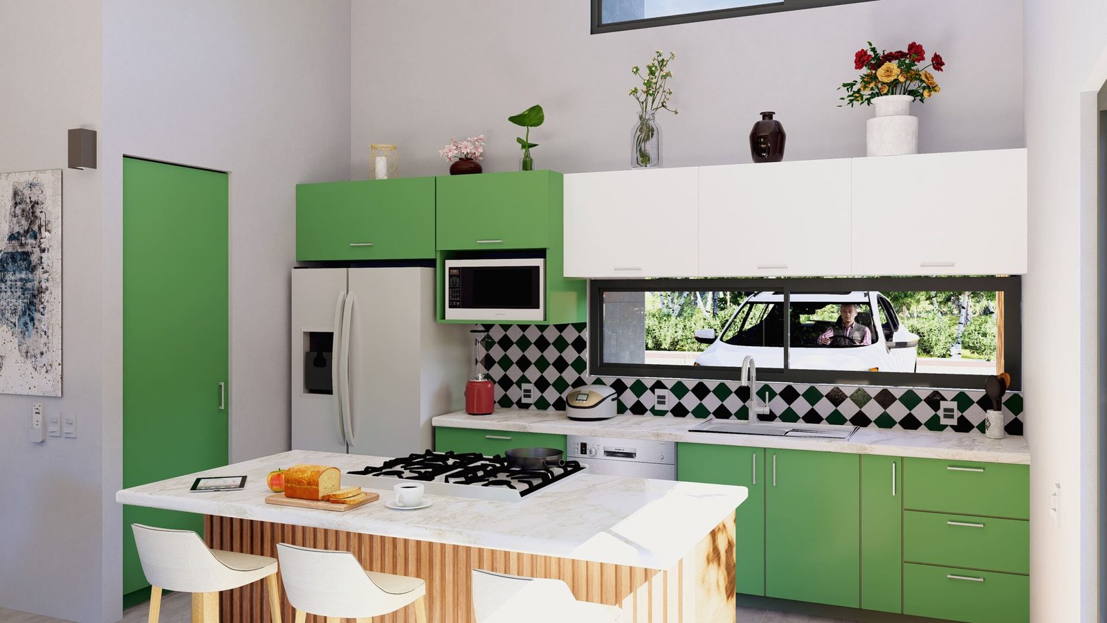 El mueble de cocina de piso tendrá un costo adicional de: en melamina ₡ 284 375.00 metro lineal, en madera ₡ 337 500.00 con sobre en granito. Mueble de cocina aéreo: en melamina ₡ 183 125.00 el metro lineal, en madera ₡ 221 875.00 el metro lineal. (Aplican Restricciones)